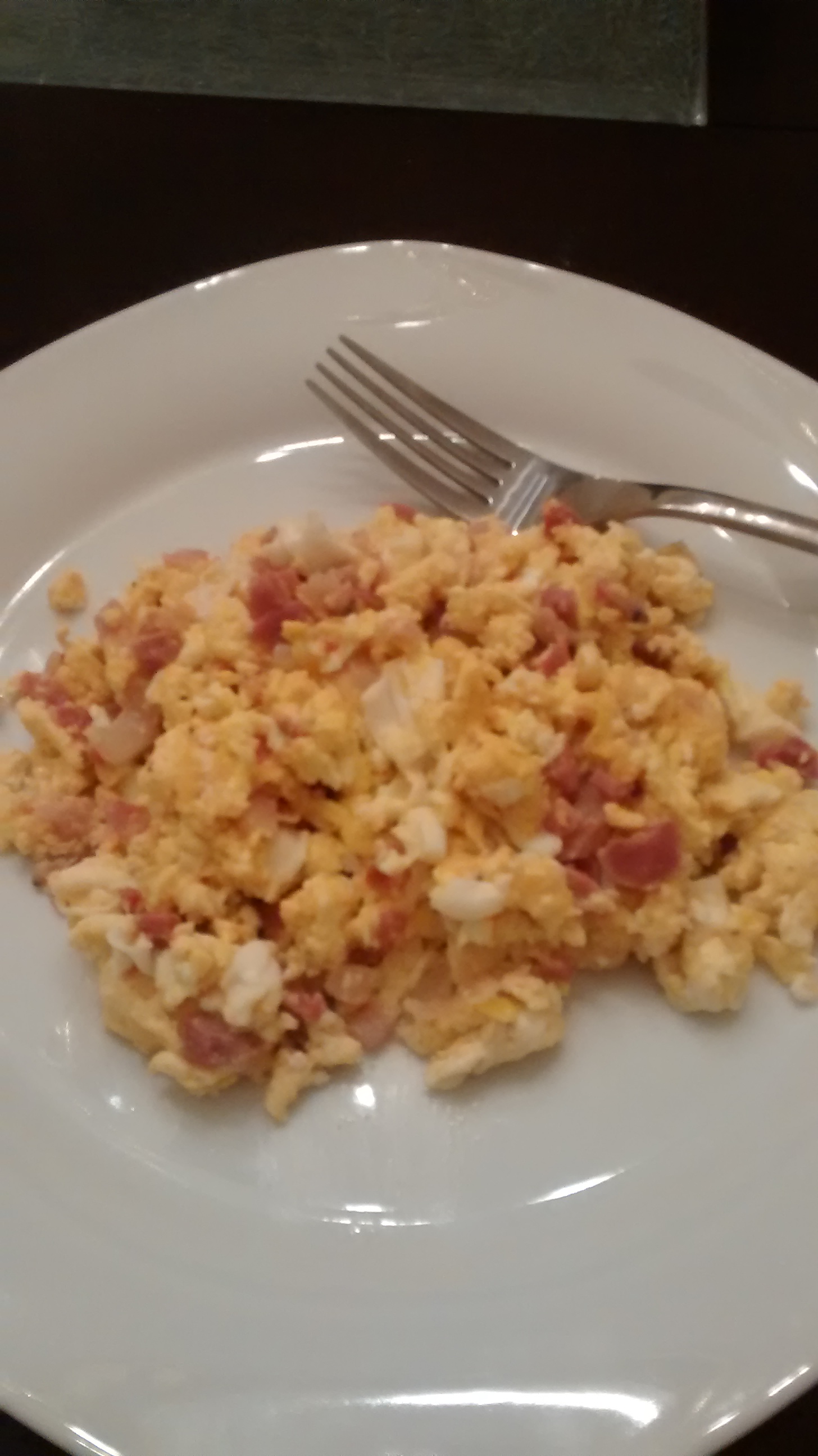 Crack the eggs into the pan on high heat. Add your hot sauce, salt, and pepper. Wait for it…Wait… Now! Start to scramble. Throw in the cheese and pancetta and keep scrambling to your heart’s desire! Put it on a nice, white plate, snap a photo, share with the internet. You’re welcome, and thank you.