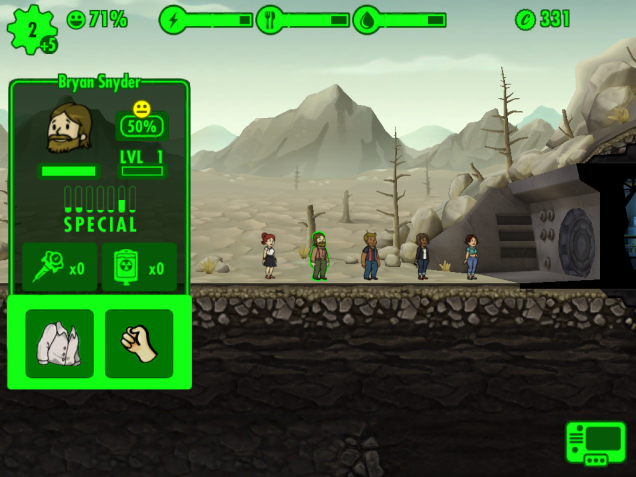Like Bryan Snyder here, everyone who lives in the vault has various stats that are ranked in the classic SPECIAL gauges of Fallout.