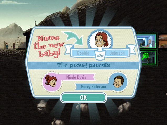Three hours later Nicole gave birth to a disappointment named Dookie Johnson. Seriously, look at their faces; if it weren’t for the survival of the Vault, they would leave him for the Bloat Flies.